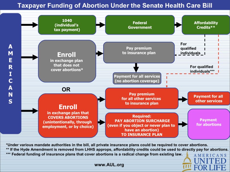 The president, in his zeal to get this bill passed, feels comfortable saying that there is a lot of misinformation out there. Perhaps that’s the information coming from the president. At the AUL Web site, there is a chart that explains how your tax dollars can be used to fund abortions even without having them go directly to abortion services (click on the image to see it larger).